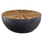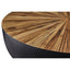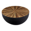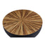 Handcrafted from bamboo, this large coffee table features smooth sides with a sleek edge. The countered base in dark ebony and natural shade contrasts the decorative sunburst pattern on the rounded top and elevates natural charm and style.