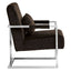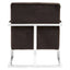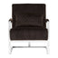 The thick padded cushion and backrest of the Gatsby chair are supported by an angular frame made from brushed chrome. Its smooth, reflective surface contrasts with the geometric quilted design of the luxuriously rich black velvet. Removable armrests and a coordinating rectangular cushion enhance the comfort of this statement chair.