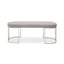 This bench boasts a natural fabric upholstery in foam padding that contributes to its comfort. The rectangular seat has gently curved sides that coincide with the C-shaped frame in a smooth brushed silver finish. A perfect end of bed bench seat.