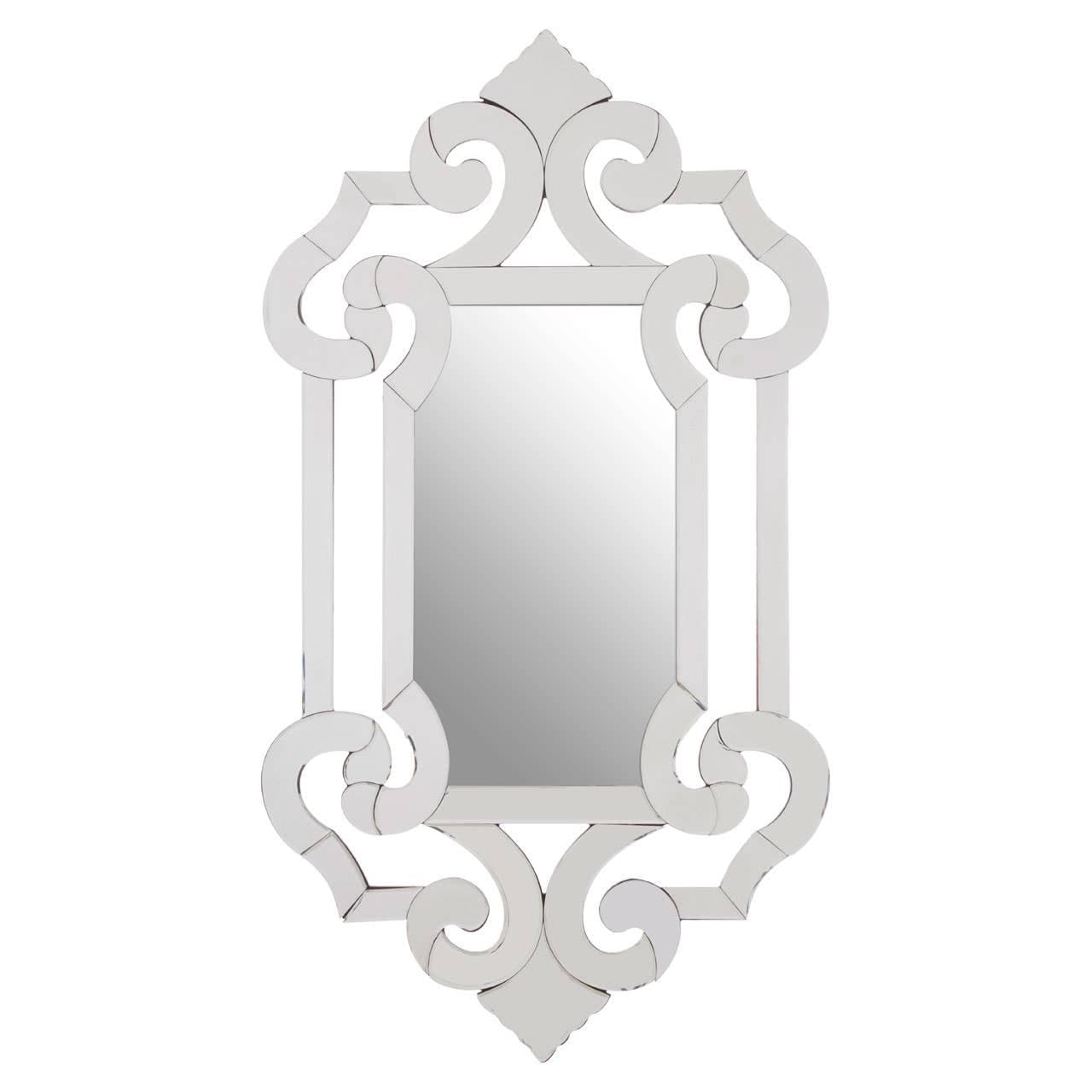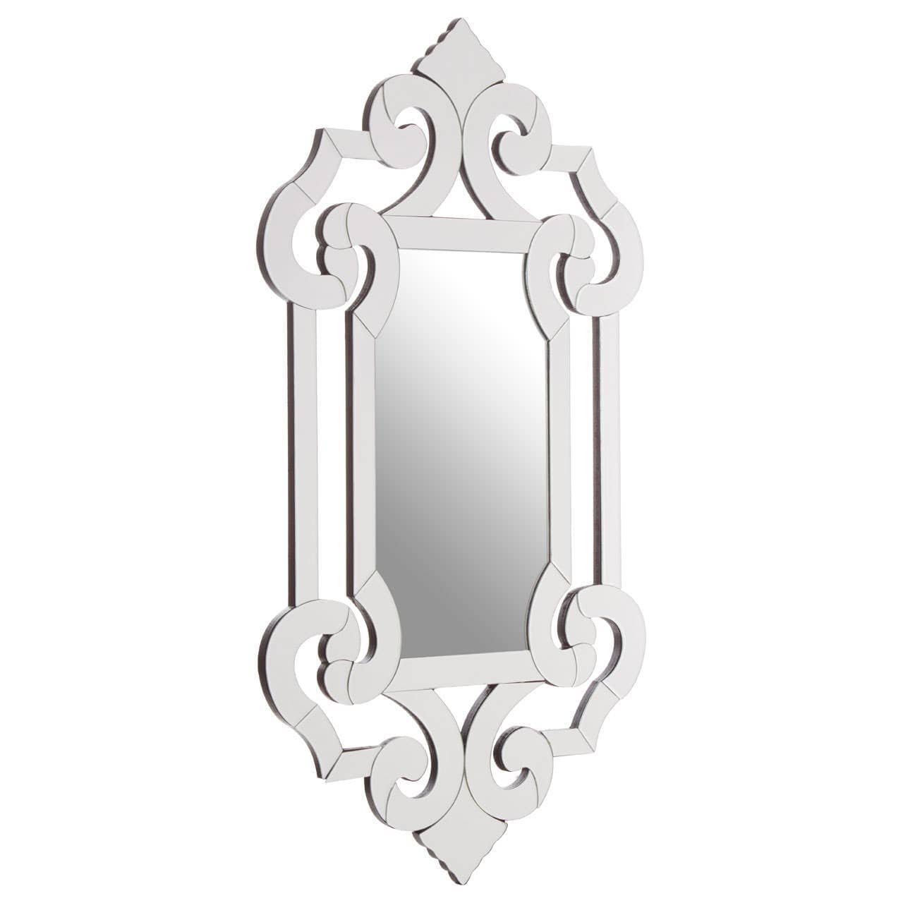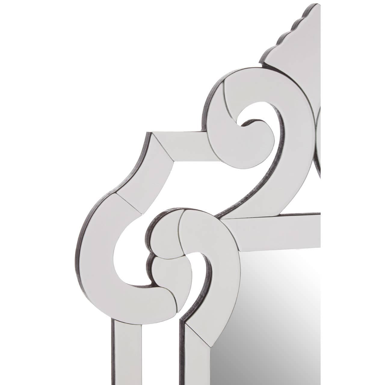 The decorative mirrored frame of the Giovana wall mirror references traditional fleur de lis, adding a regal motif to the contemporary mirror. The curved, winding frame boasts subtly bevelled edges to refract light. Style with sophisticated carved furniture and rich textiles for a luxurious interior.