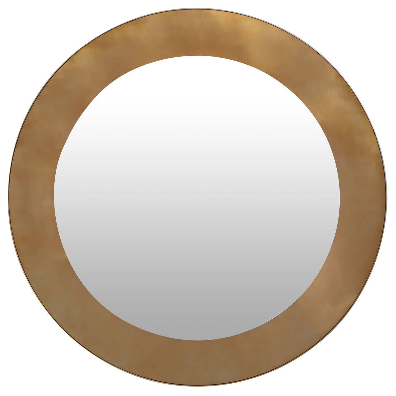 This round wall mirror features a minimal profile with a rounded, slender construction. The stainless steel frame has a brushed gold finish that exudes luxe sophistication while a reflective mirrored glass completes the contemporary aesthetic.