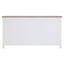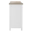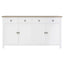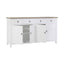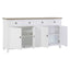 The Hampstead sideboard has four sliding drawers that are positioned beneath the oak wood tabletop, while a further four cupboard doors open to reveal generous storage space. Carved metal handles add a touch of formality to this piece, their dark colour counterpointing the sideboard's white wood.
