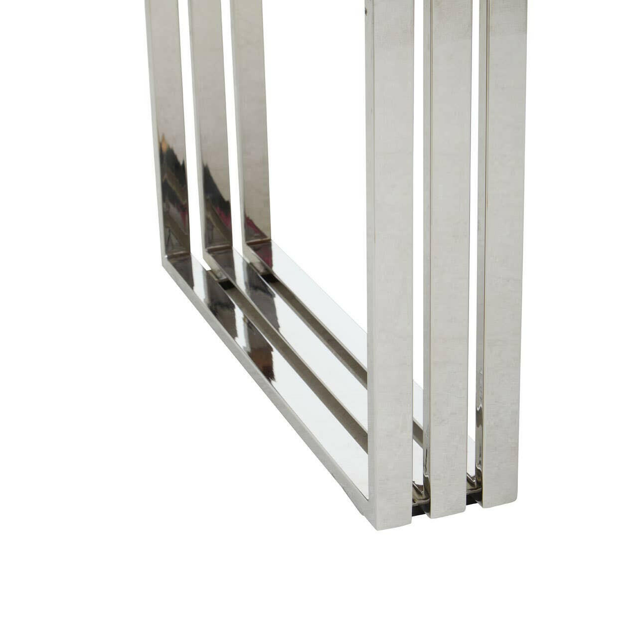 The Hamstead coffee table perfectly combines different elements to create a modern and unique feel. The natural wood table top rests on top of two stainless steel bases.