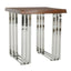 The Hamstead small console table perfectly combines different elements to create a modern and unique feel. The natural wood table top rests on top of two stainless steel bases.
