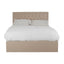 Featuring a diamond tufted tall headboard slat and hopsack fabric upholstery, the Hannah beige double ottoman bed is crafted to make a statement while ensuring comfort. The matching button tufting is contrasted by a stud detail outline giving it an elegant visual appeal. Sturdy and stylish, the renewable pine wood frame of the bed ensures strength and provides ample storage underneath.