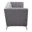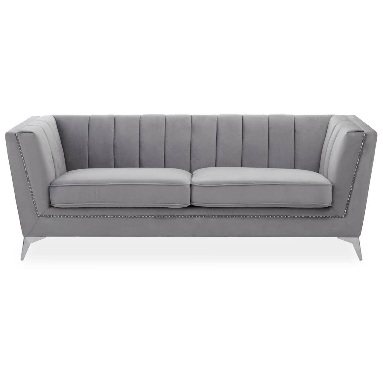 The tapered design of this three-seat sofa set will create a visual statement. Expertly upholstered in sumptuous grey velvet, the channel tufting on the back adds depth to the sofa, while the chromed oblique metal legs will ensure support with style.