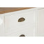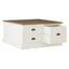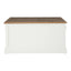 White and gold colours combine to give the small Hardwick coffee table breezy coastal design style. The drawers and door feature bevelled detail that frames the antique style cup handles, with subtle carving at each side creating a symmetrical look. Its fir top boasts rich graining that counterpoints the table's smooth white finish.