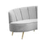 Upholstered in grey velvet, this three-seat sofa highlights clean-line stitching with a pleating effect on the back. Elevated by slanted metal legs in the warm metallic finish, the curved shape of this sofa will make a luxe statement in the living area.