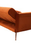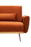 The Hatton sofa bed is upholstered in luxe orange velvet, this sofa bed has a foam padded seat, supported by angular arms and back. The backrest has a lowering mechanism that allows it to transform into a bed, while sleek Rose gold finish metal legs add glamour