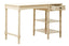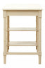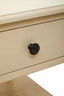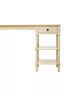 This pine wood rectangular desk is accented in an antique pearl finish and features one drawer and two shelves for storage. The desk stands on carved spindle legs, which add to its country charm.