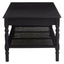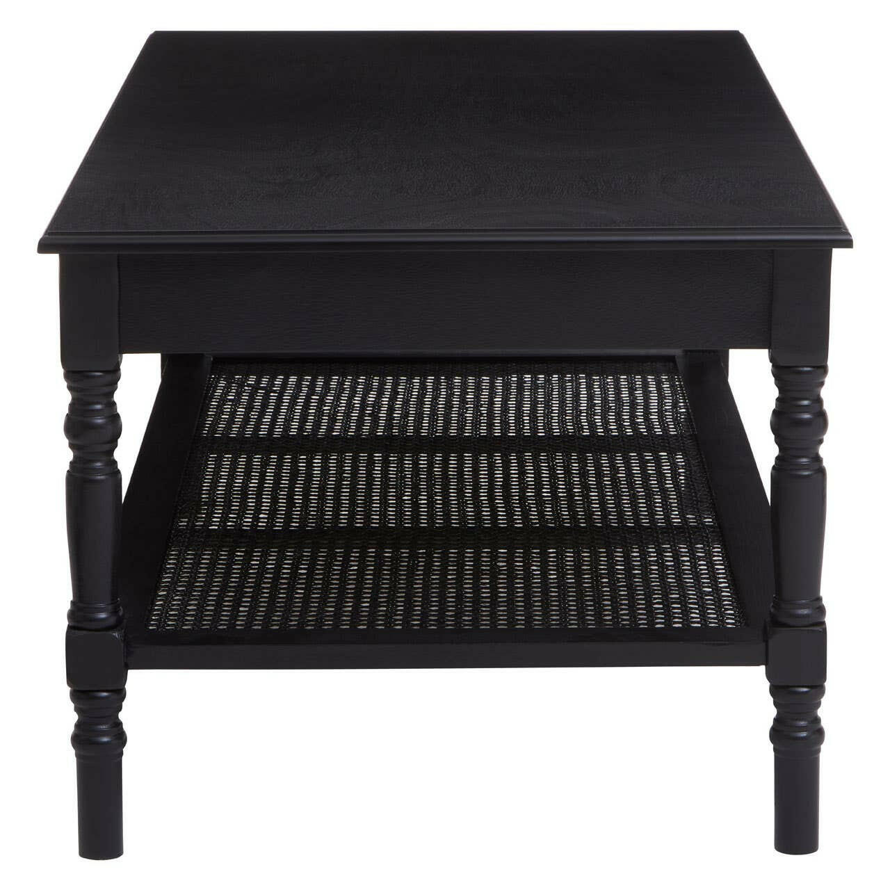 Turned spindle legs along with the lower shelf, contribute to this coffee table’s timeless appearance. Made from durable pine wood, this table has an antique black finish, emphasising the classic style.