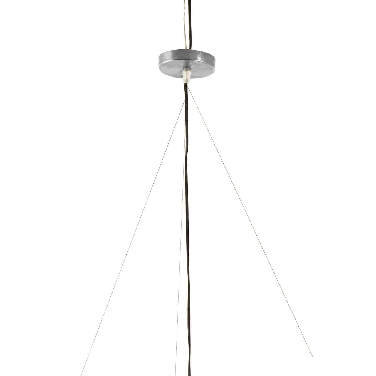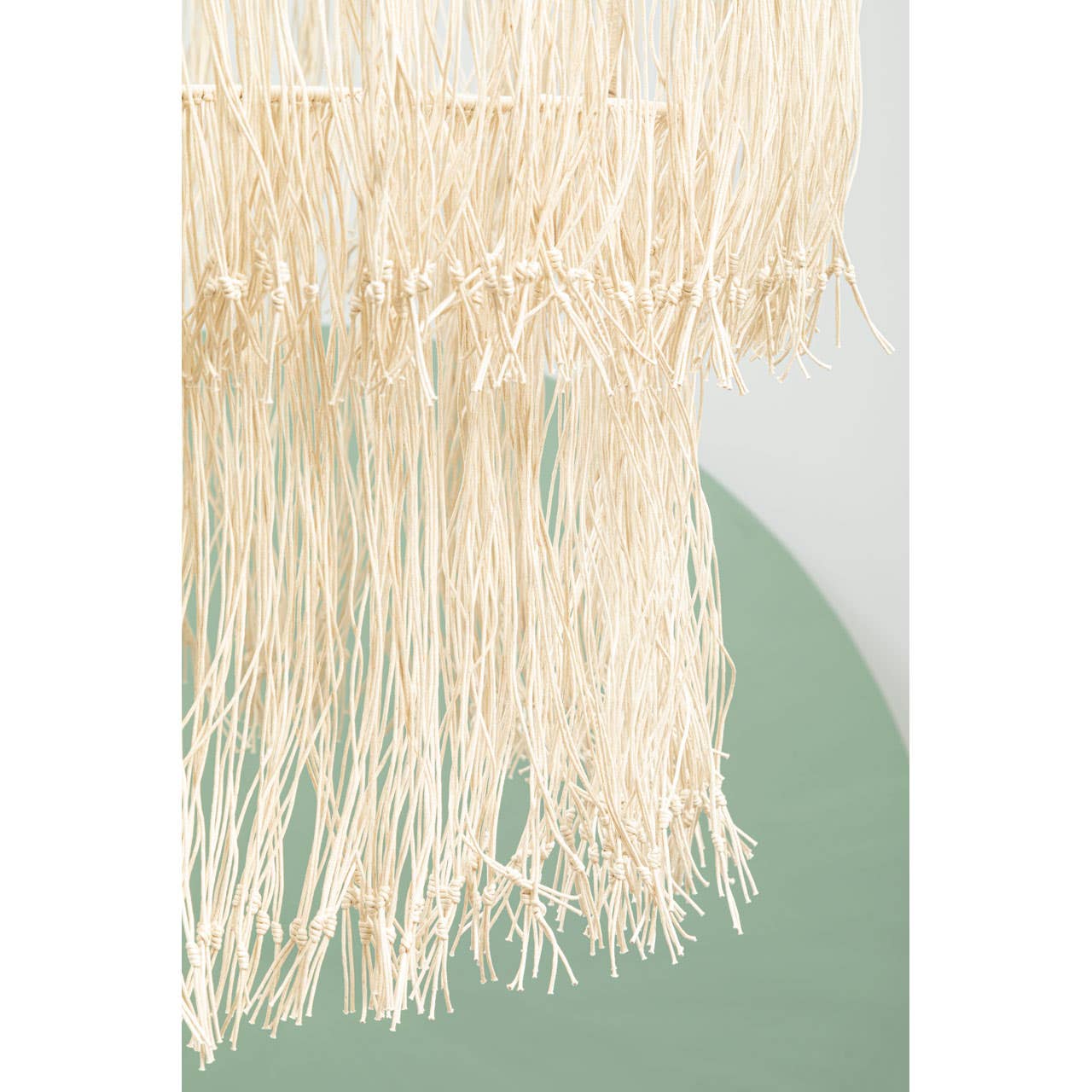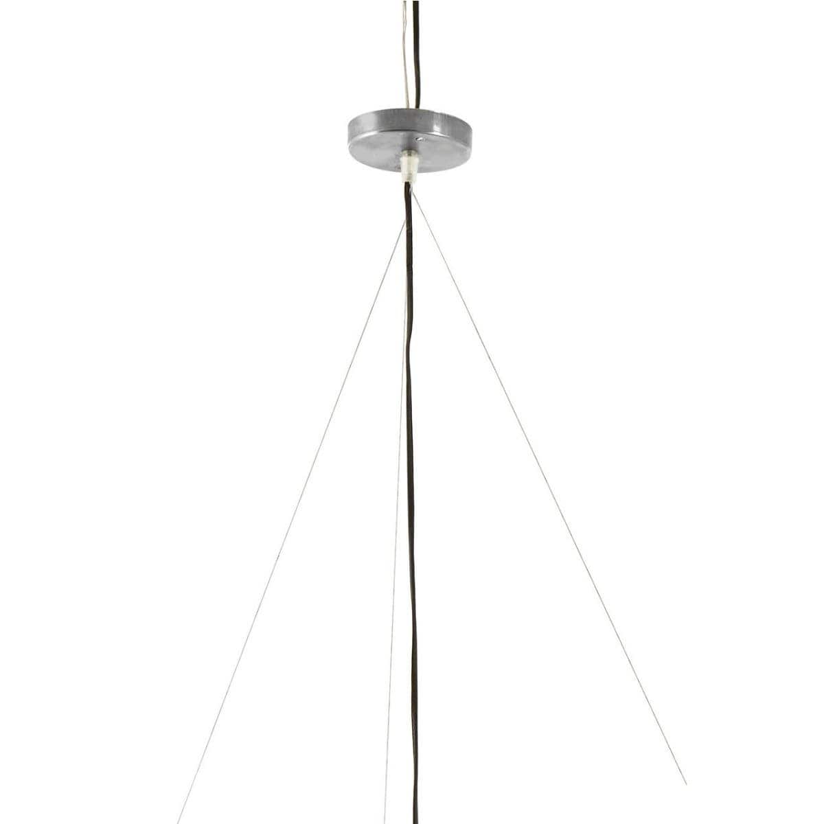 The two tier shade of the Hestina ceiling light is formed from a series of soft leather strings which are knotted at the ends. Three bulbs combine with the shade to diffuse light softly.