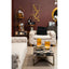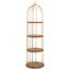 The Horizon bird cage design bookshelf has a stainless steel frame crafted from slender bars and is given a rich rose gold finish. It features three faux marble tiers, providing ample space for displaying books and other small objects.