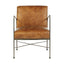 Featuring distressed light brown leather upholstered skilfully on a foam-padded seat, this chair ensures optimum comfort. Complete with standard welting, this chair is supported by sturdy iron legs, and the cross pattern base adds stability to the chair.