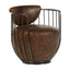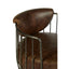 Exhibiting a natural juxtaposition to the iron fixture, the seat and backrest of this chair are upholstered in distressed brown leather. The quilted detail lends a textured feel to the chair, while the swivel base underneath allows a 360-degree rotation.