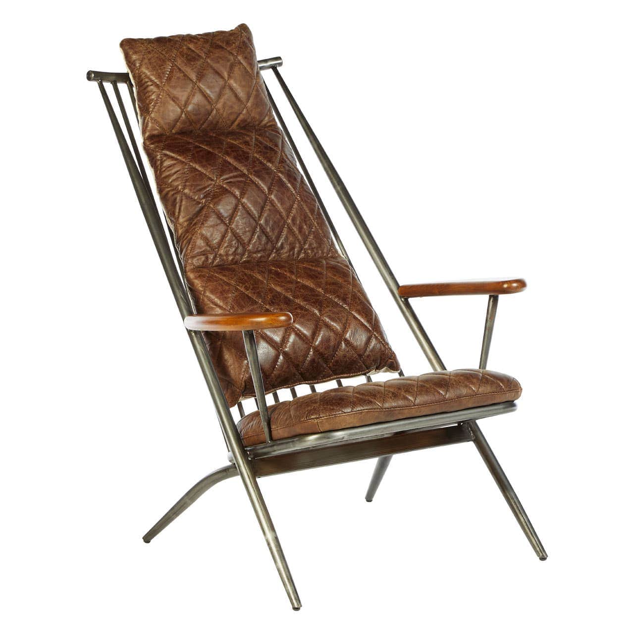 The Hoxton cocktail chair is created from strong iron with a dark, subtly distressed finish. The slender metallic legs and backrest lend the chair to soft industrial style interiors. Tactile, curved ash wood armrests lend a natural accent to the metal frame and coordinate with the brown tones of the quilted leather upholstery.