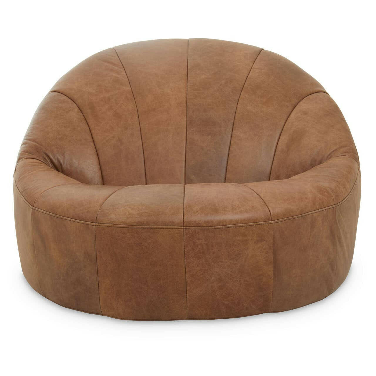 Upholstered with top-grain light brown leather, the dense foam padding of this accent chair ensures a comfortable seating experience. The pleated detail on the seat and backrest of this chair creates a visual statement in the living area.