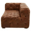 The Hoxton right arm sofa has an unmistakable stately presence. Beautifully crafted vintage brown leather is tufted, creating the iconic dimpling while the raised right arm adds a unique quality.