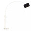 The floor lamp has an arched nickel finish frame with a round, black fabric shade. The curved frame is supported by a chrome finish base. This contemporary floor lamp makes a great reading light or can be used to create a cosy atmosphere.