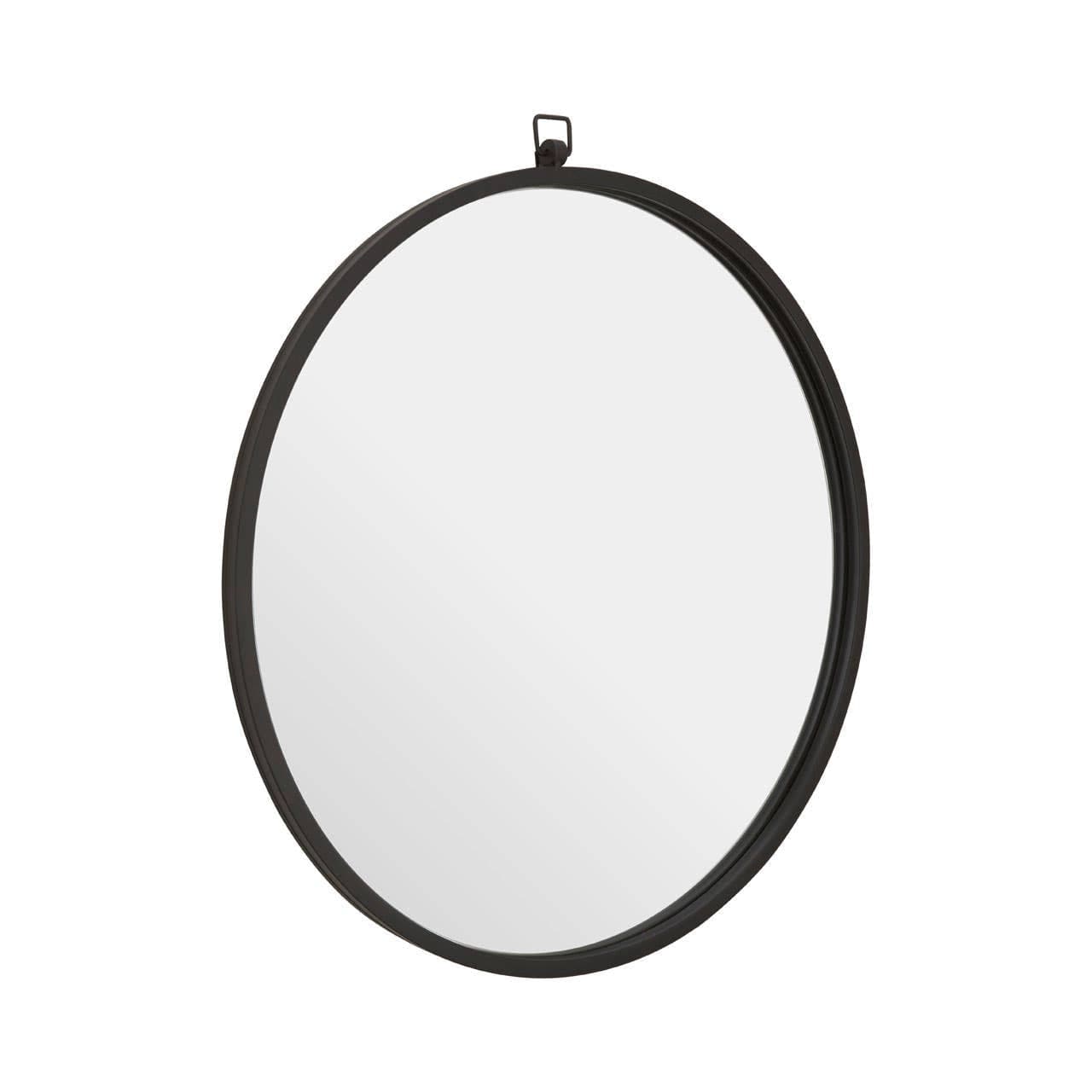 The Jacen wall mirror is encased in a slim frame made from strong and durable metal. Its sleek black finish blends with the mirrored surface, creating a piece that is poised and understated.