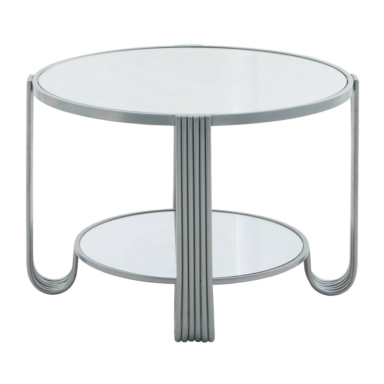 The Jolie round table is modern and understated. A simple mirrored tabletop is paired with a sleek silver frame, creating a contemporary look.
