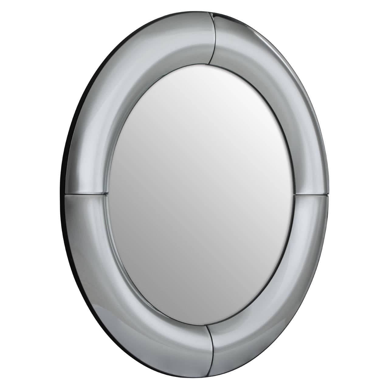 Make a statement with the Josie wall mirror. The mirror has art deco style silver panels that join together creating a dramatic round frame. This simple design works well with a multitude of interior design styles.