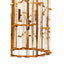 Surrounded by crystal accent prisms respectively and geometrically arranged in a vertical glass frame refracting the light in multiple directions, emitting classy aura. Crystal spheres shimmer like dewdrops in brass finished iron grid with eight bulbs.