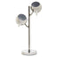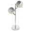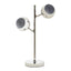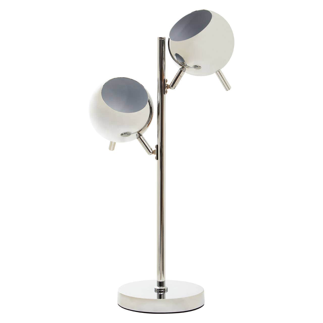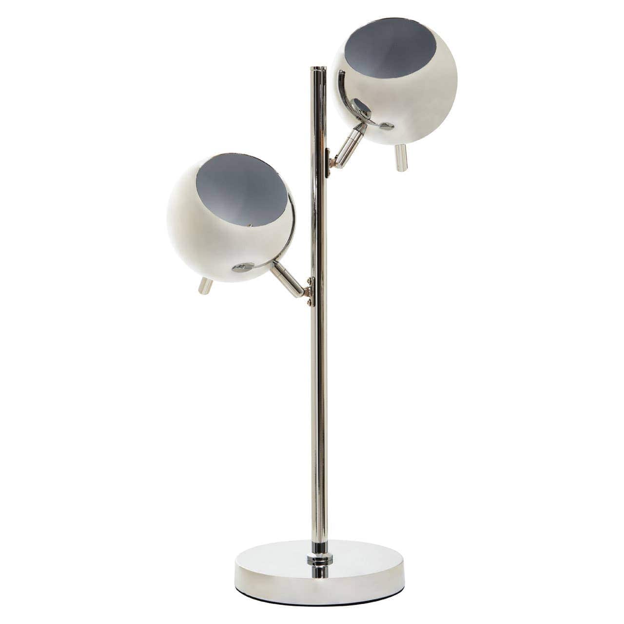 This chrome finished table lamp features a unique design of two separate lamps branching off from the base stand, supporting the arched body's scalable design. Lamp's appealing metal dome shades are placed at the end of the arc, making it versatile and functional.