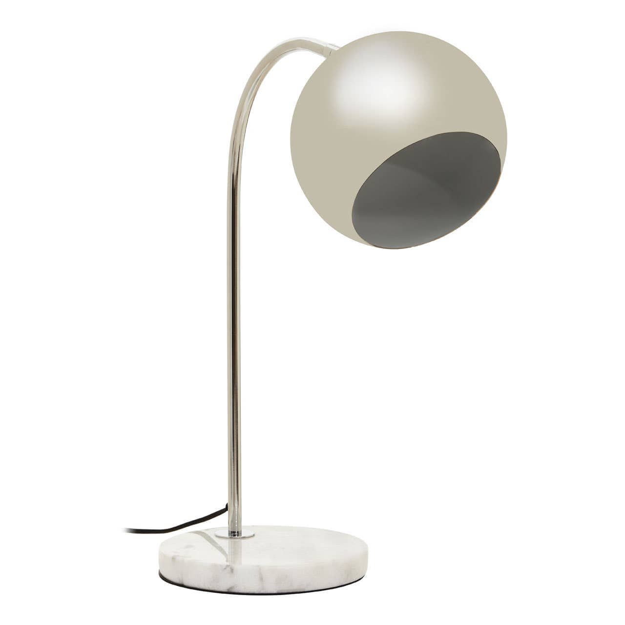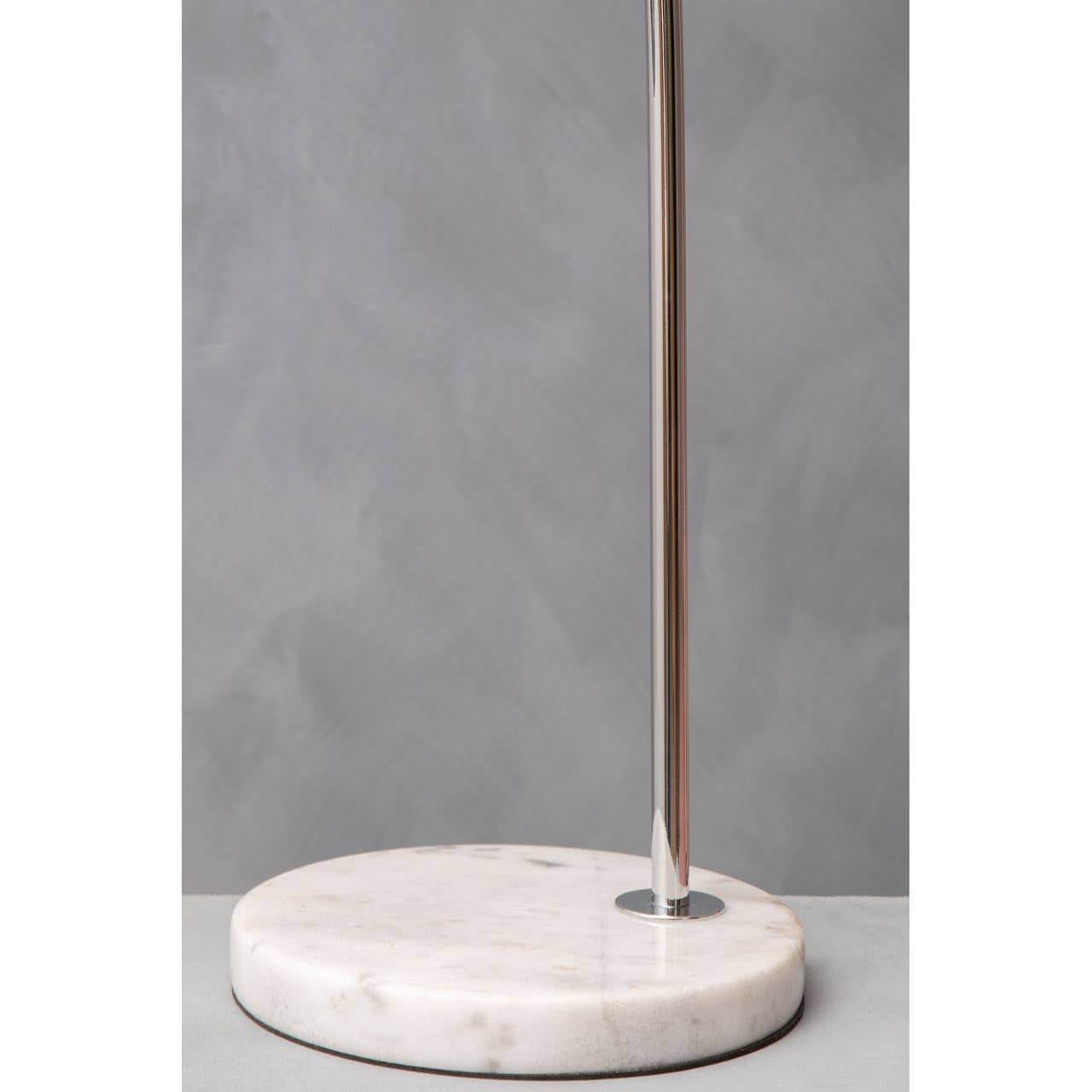 This chrome finished single bulb table lamp is a modern addition to any decor, white marble round base supports the arched body's scalable design. Lamp's appealing metal dome shade is placed at the end of the arc, making it versatile and functional.