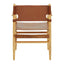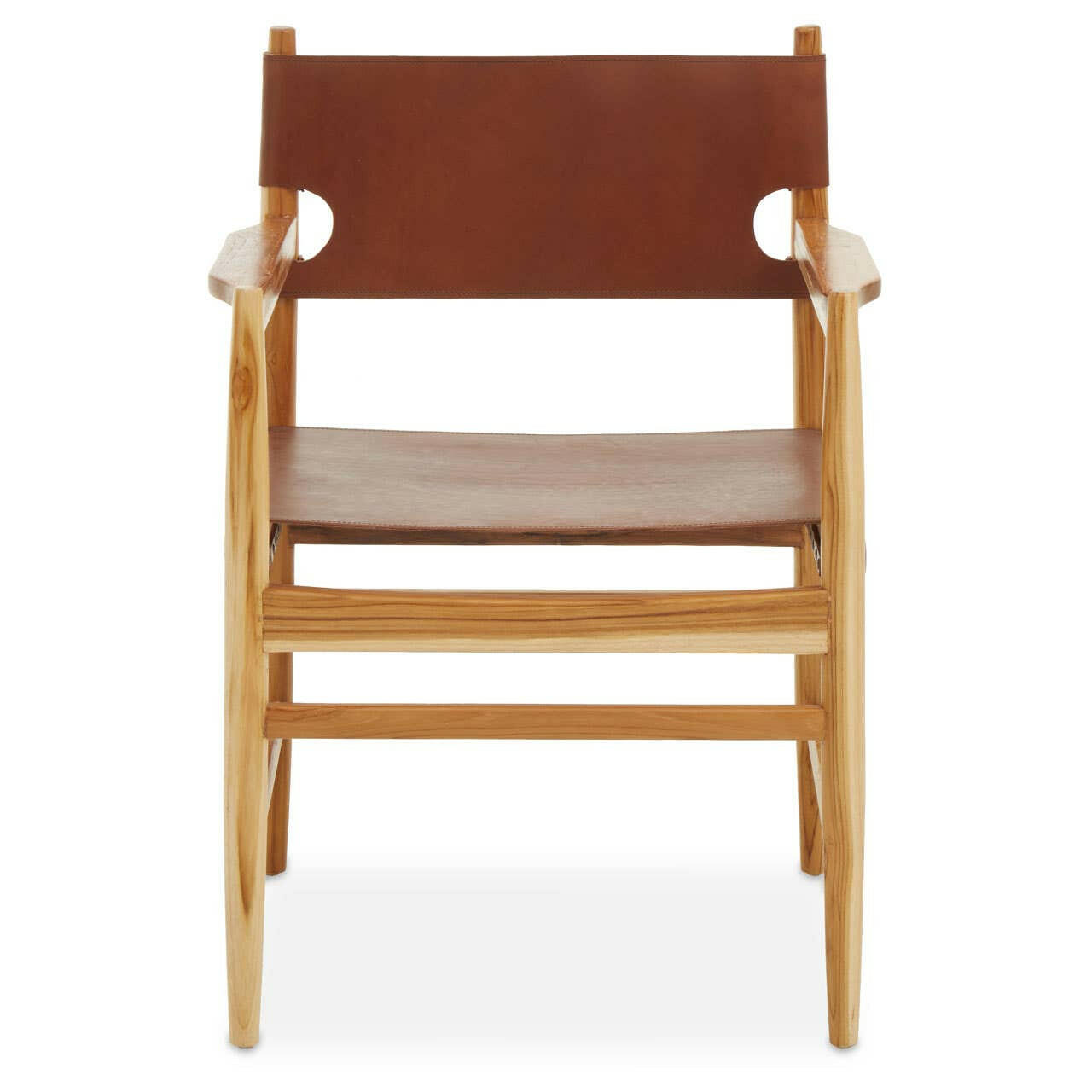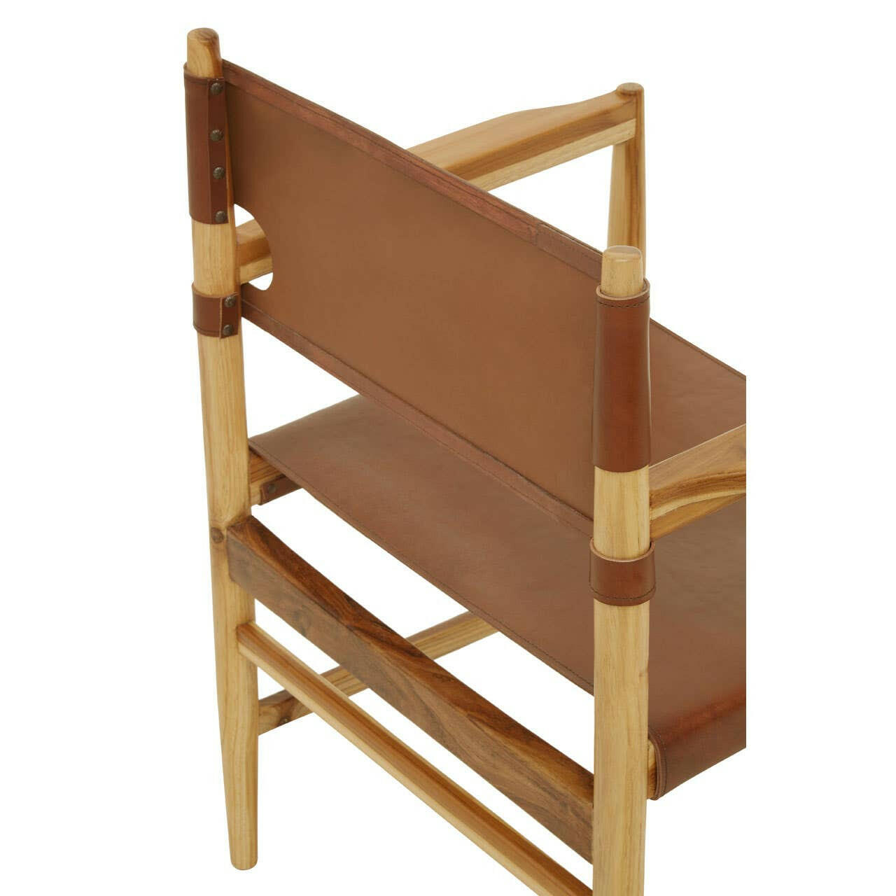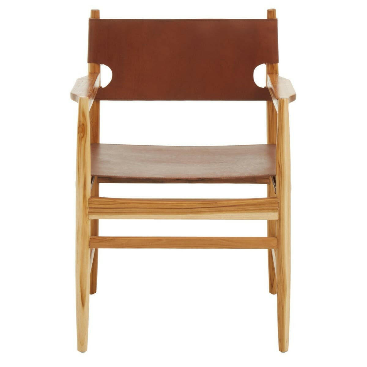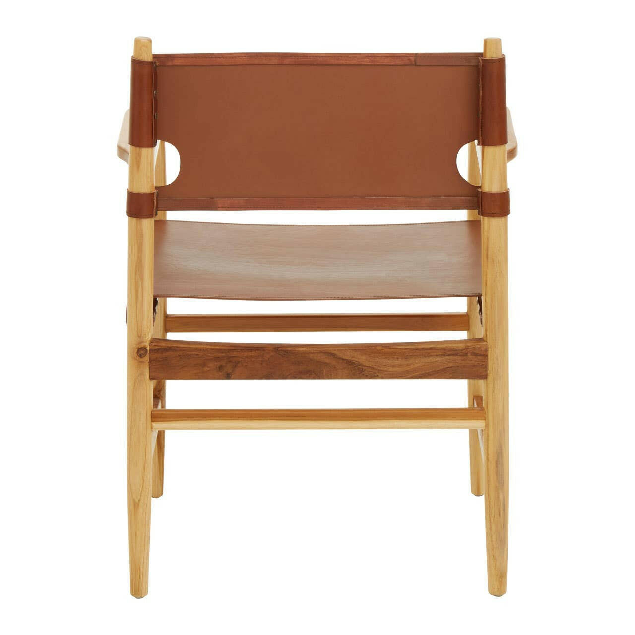 The frame of this chair is handcrafted expertly from teak wood, and the natural tonal variation will lend a rustic charm to the area. The clean-lined frame of this chair is wrapped with antique brown cow leather to ensure a relaxed sitting experience.