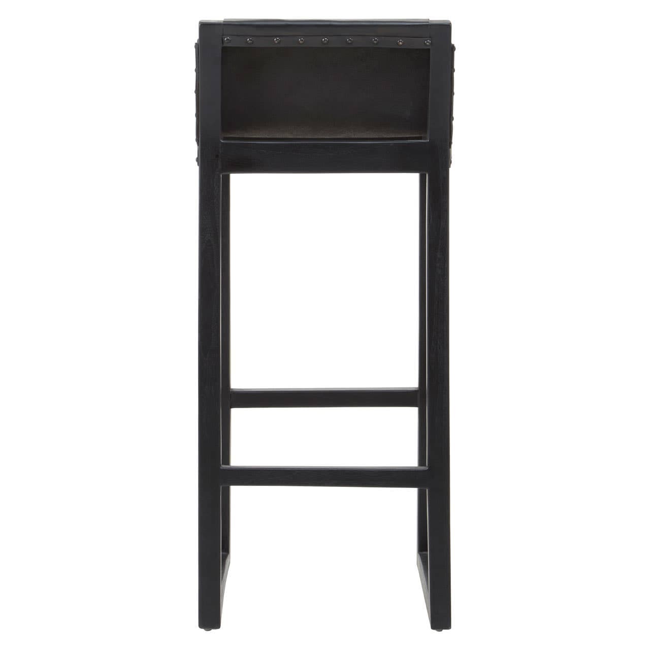 The Kendari bar stool oozes modern sophistication with its black leather seat adorned with stud detail. The black teak wood legs with footrest ensure a perfect balance and enhance the sleek aesthetic, making the chair perfect for boho chic decors.