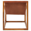 The distinctive frame is crafted from natural, renewable teak wood and has a brown finish that accentuates its unfussy design. A sling of soft leather forms the seat and is coloured brown to seamlessly complement the wood. Part of the Kendari collection, coordinate it with minimal furniture and accent pieces.