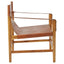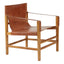 The brown cow leather seat and backrest of this chair form a sling design that is wrapped neatly around a solid natural teak wood frame. The clean line design contributes to the minimal aesthetics of this chair, while the studs add a metallic accent.