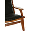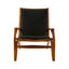 The solid teakwood frame brings the natural warmth of wood to the inviting design. Dramatic arms and a deeper seat offer relaxation with mid-century modern sophistication. The sculpted frame and plain black cow leather add an architectural feel to the chair.