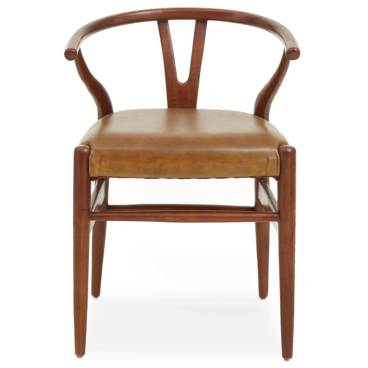 A design triumph and equally attractive from front to back, this stool is a true masterpiece from any angle. The intricate brown teak frame is complemented by the camel cow leather seat, creating a sleek and cohesive look.