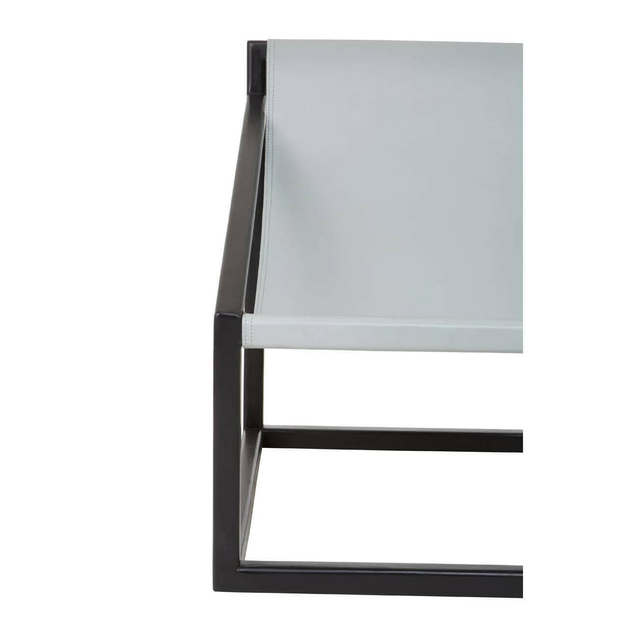 The distinctive frame is crafted from natural, renewable teak wood and has a black finish that accentuates its unfussy design. A sling of soft leather forms the seat and is coloured grey to create a contrast with the wood. Part of the Kendari collection, coordinate it with minimal furniture and accent pieces.