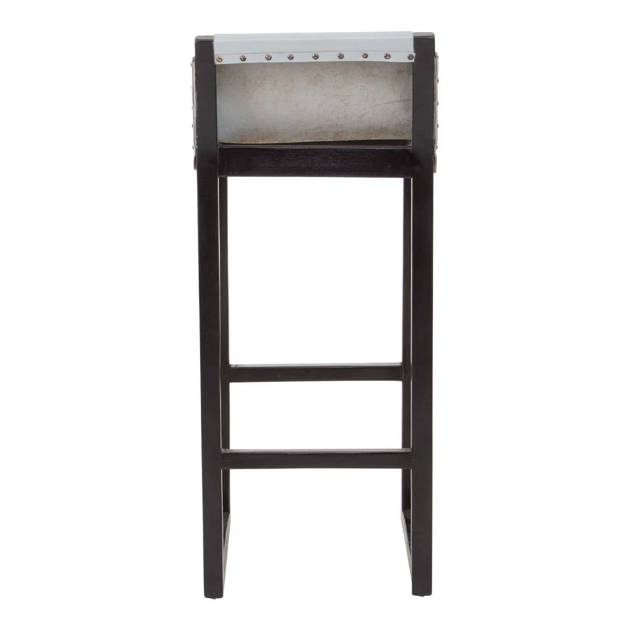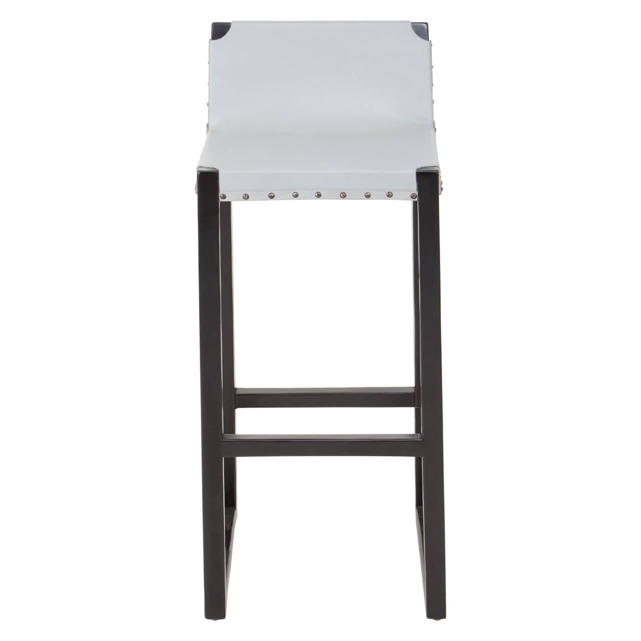 Its sleek monochromatic palette gives the Kendari bar stool a contemporary, brooding character. The grey leather which is used to dress the seat and backrest is trimmed with metallic studs. Its tall legs are crafted from sustainable teak wood, have a matching black finish, and feature a footrest for added comfort.