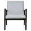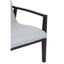 Its frame is made from solid teak wood and has a sleek black colour. The frame's clean lines are softened by a slight wave at the base of the seat. Both the seat and backrest are upholstered with soft leather, coloured grey to complement the sustainable teak wood. Thick stitching accentuates the lines and produces a subtle textured look.