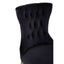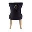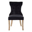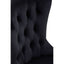 This black velvet dining chair features an hourglass back decorated with button tufting and is complemented with a plush, padded seat. Made from renewable rubberwood, antique finish legs offer rustic contrast to the luxe velvet textures.