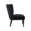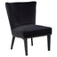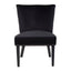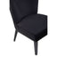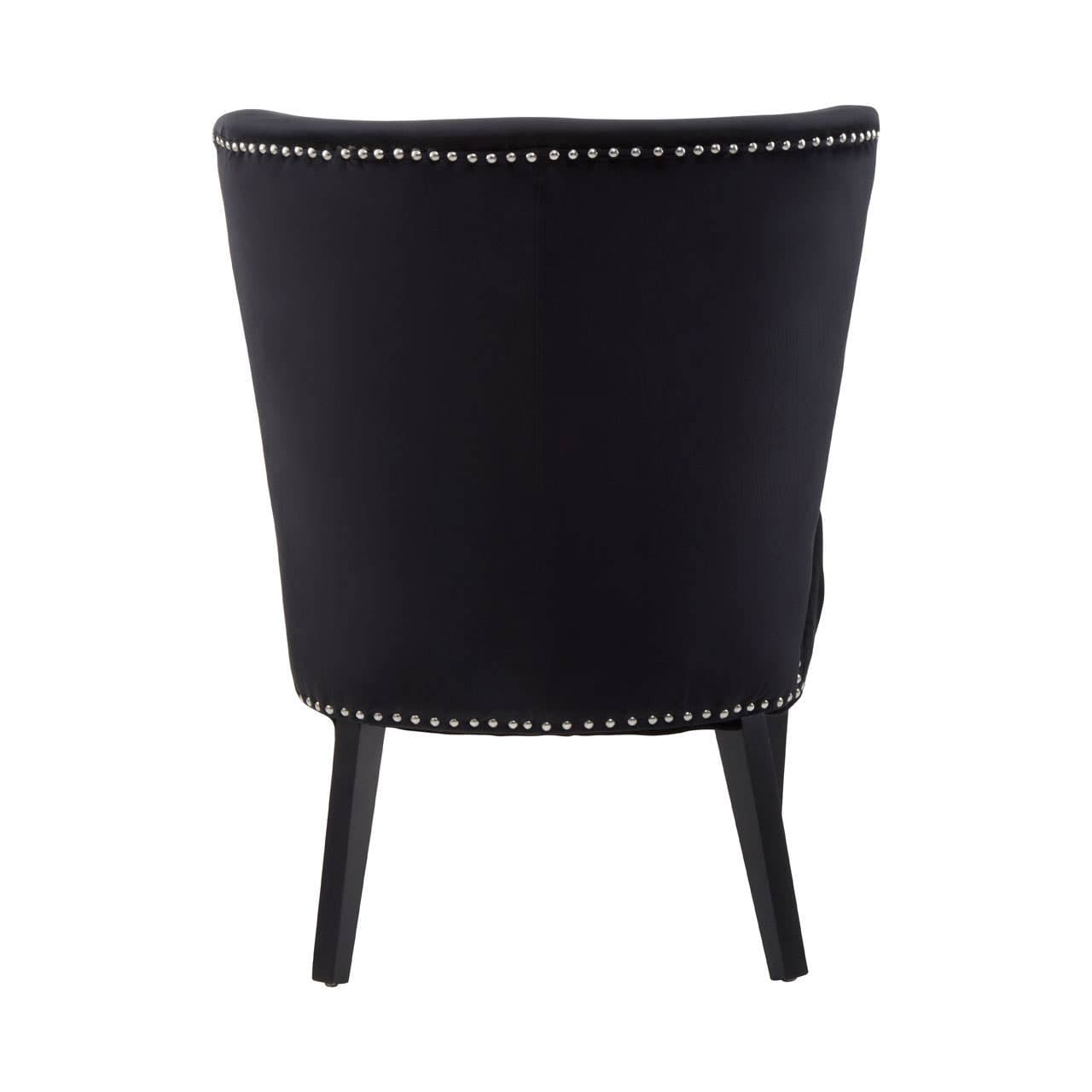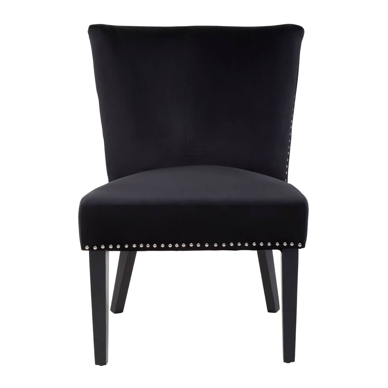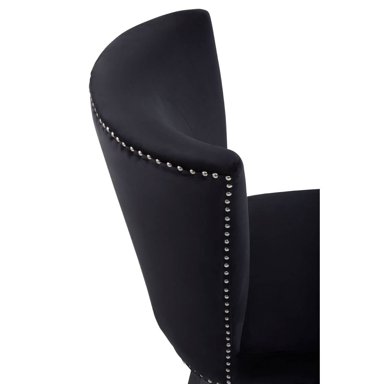 Upholstered in black velvet, this dining chair has generous, deep-cushioned seat complemented by barrel back. Black finish renewable rubberwood legs match the plush velvet while stud detail trim enhances the luxe accent.