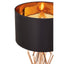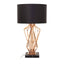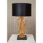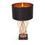 Boasting a decorative structural design, this table lamp will make a visual statement to a modern classic setting. A black fabric drum-shaped shade is neatly attached to a crossover metal frame in a bronze finish which sits atop a plinth marble base.