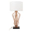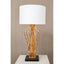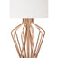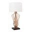 Boasting a decorative structural design, this table lamp will make a visual statement to a modern classic setting. A white fabric drum-shaped shade is neatly attached to a crossover metal frame in a bronze finish which sits atop a plinth marble base.