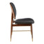 The elegant Kenso dining chair is created from dark walnut wood that boasts distinctive graining. The comfortable backrest and seat are upholstered in genuine black leather which has been channel tufted to create a shapely chevron pattern. Angled and tapered legs are in keeping with the chairs smooth, curved shape and lend it well to modern retro style interiors.
