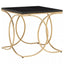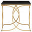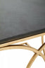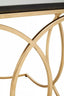 It is beautifully crafted with impeccable craftsmanship and great attention to detail. Black marble top makes a grand statement with its straight-lined gracefully arched gold frame with curvaceous structure.