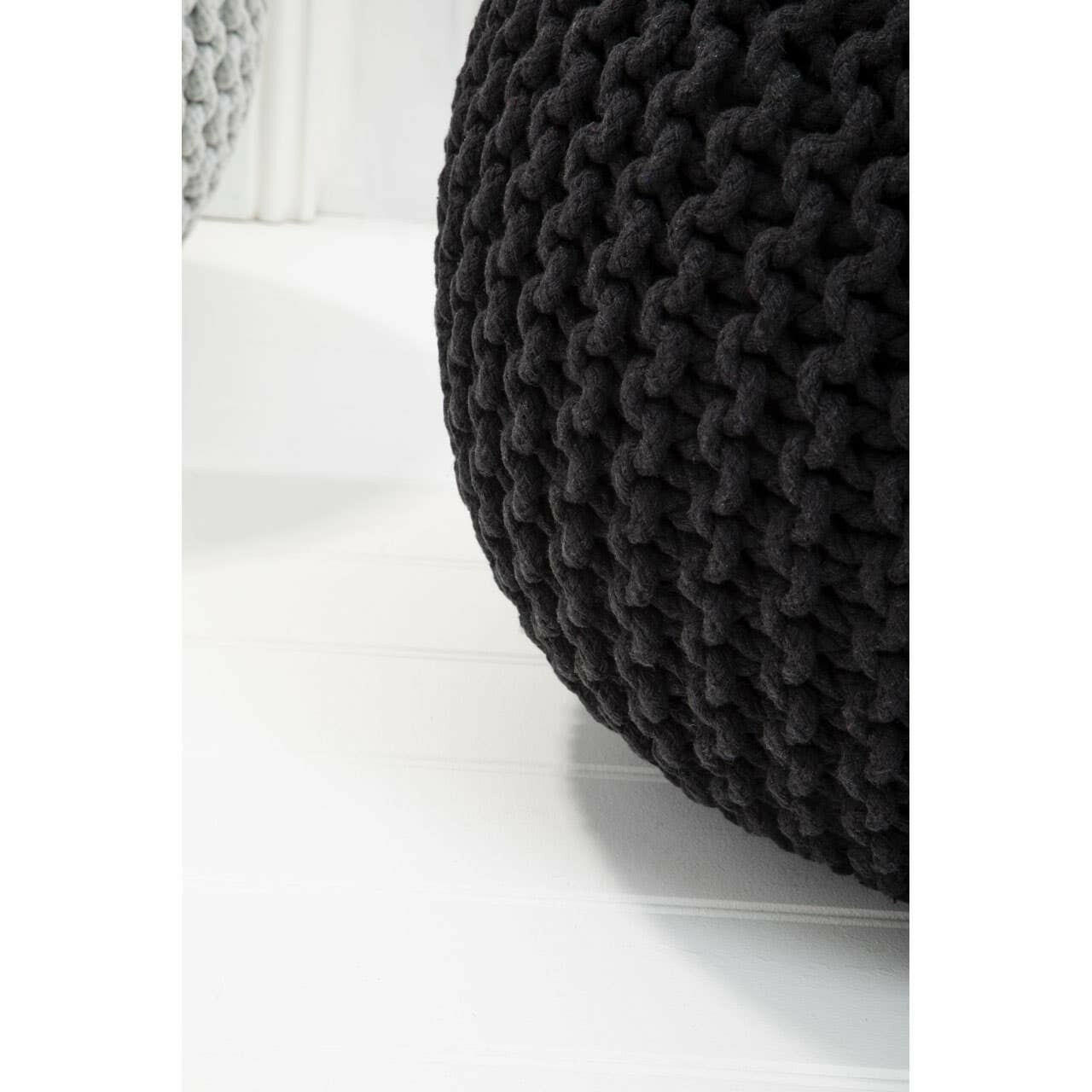 This pouffe is made from soft and durable cotton and exhibits an intricately knitted design in a black finish that adds a homely touch. The round shape and richly textured surface of this pouffe ensures an optimum seating experience.