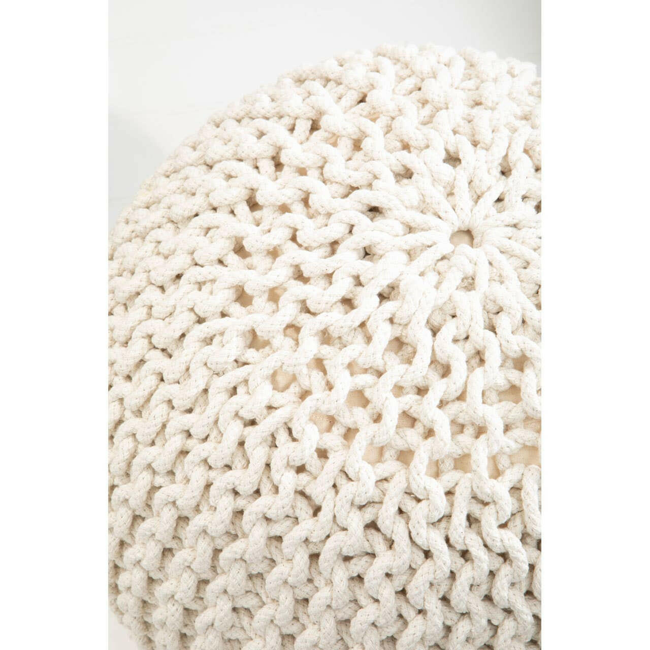 This pouffe is made from soft and durable cotton and exhibits an intricately knitted design in a cream finish that adds a homely touch. The round shape and richly textured surface of this pouffe ensures an optimum seating experience.