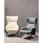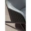 The Kiev wingback chair features a curved backseat and armrests with a padded seat. The grey seat of this armchair is supported by tapered legs made from sturdy metal in black finish.