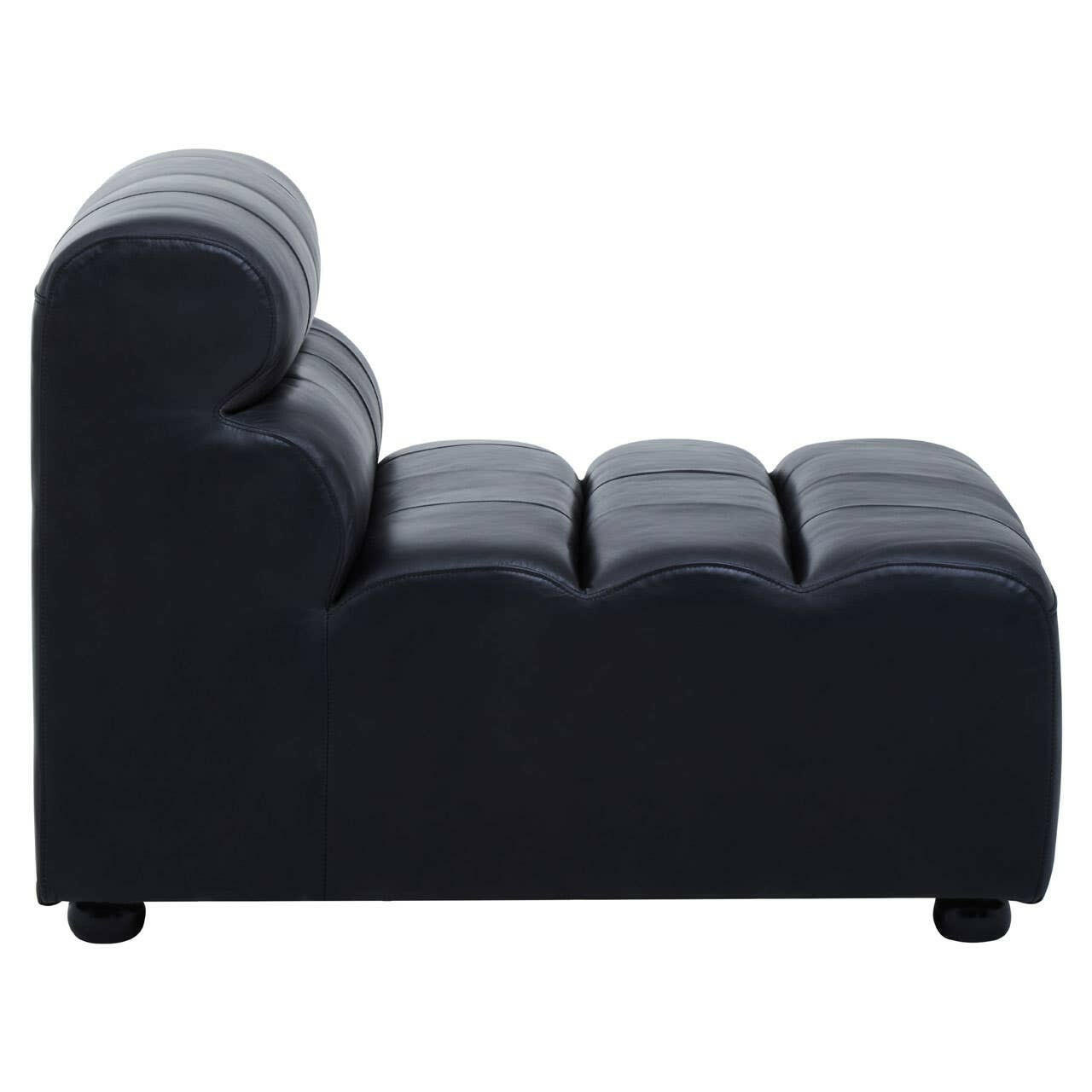Covered in genuine distressed slate leather, this chair has an elegant scrolled back offering a relaxed seating position. Channel tufting contributes to the detail and texture of the design, supported by matching eco-friendly orb feet.