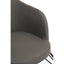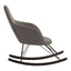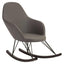 The grey fabric seat rocks back and forth on a pair of oak veneer runners. In between the seat and runners, black metal girders produce a simple cross that provides support while enhancing the aesthetic.
