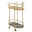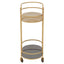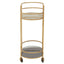 The matte gold finish of the Korba trolley creates a chic statement to the living area. This trolley boasts a clean line slender metal frame supported by castors, and the storage shelves in a grey enamel coating are ideal for serving and organising.